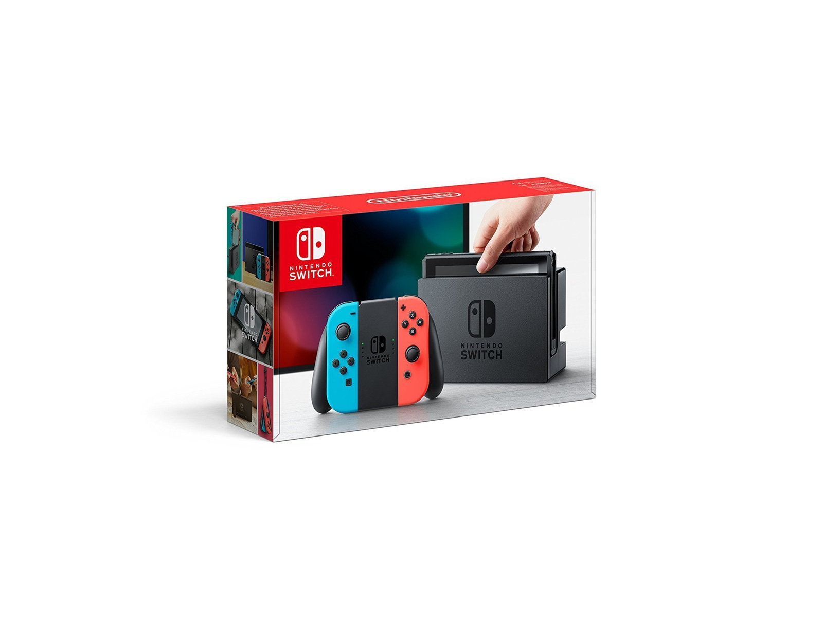 Nintendo Switch Konsole [2019er-Modell] Neon-Rot/Neon-Blau, Stromkabel, TV-HDMI-Kabel, Joy-Con Controller, Joy-Con Halterung, Handschlaufe, zweite Handschlaufe, Dockingstation, OVP.